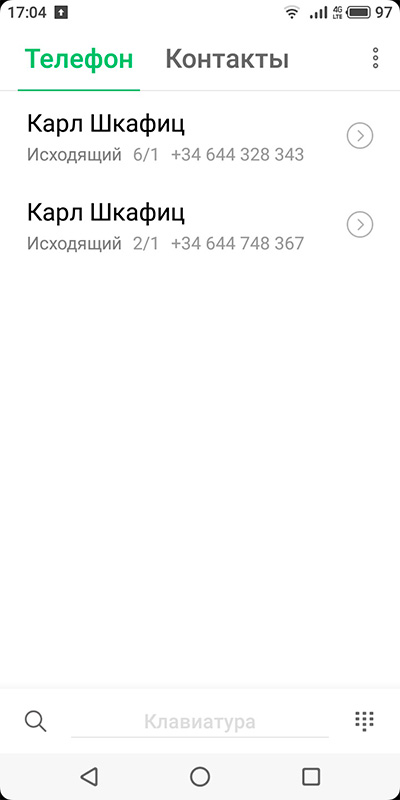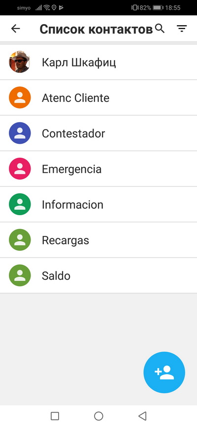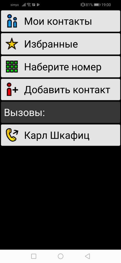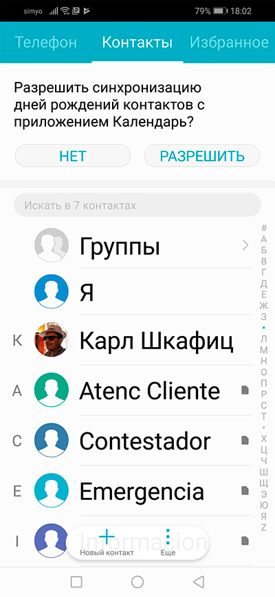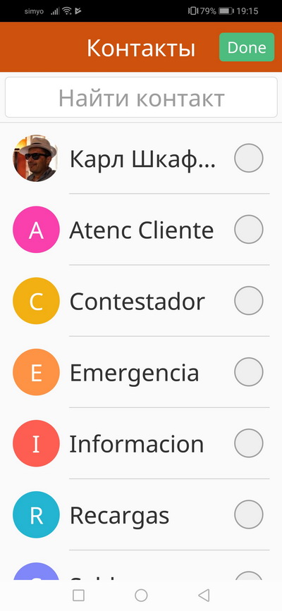 Экран контактов.