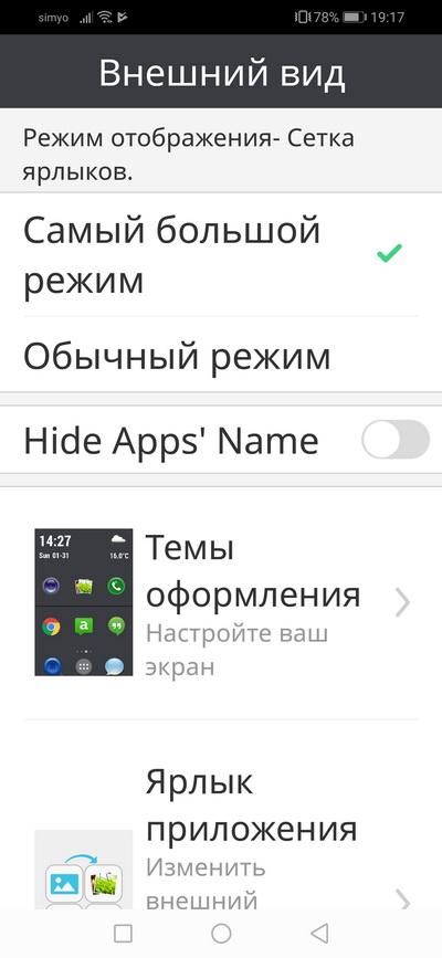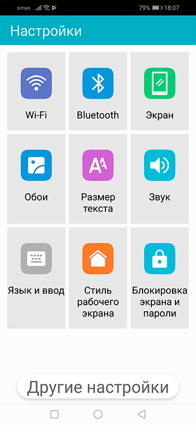 Что касается простого режима - сейчас проверил, он точно такой, как нарисовано для просто Хуавеев (плитки). Наверное, от версии оболочки зависит, у последних версий плитки, у предыдущих могли быть и крупные пиктограммы.