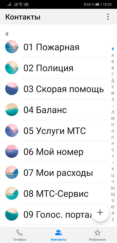 Телефонные контакты.