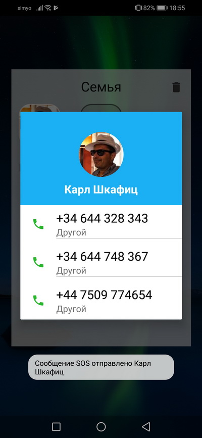 Варианты SOS - SMS, звонок.
