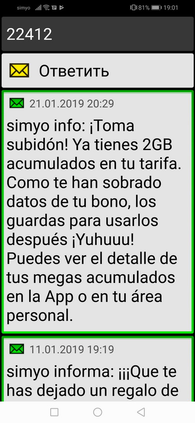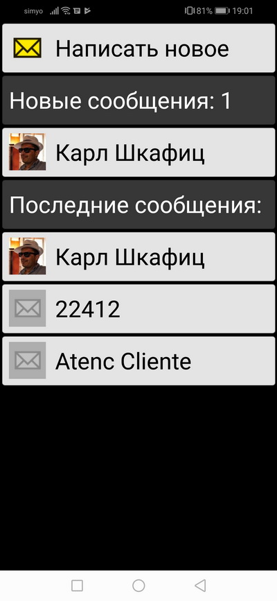 Сообщения. Шрифты крупные, очень удобно.