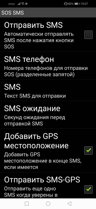 Настройки SOS.