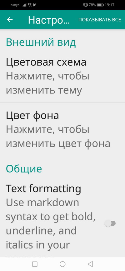 Настройки приложения.