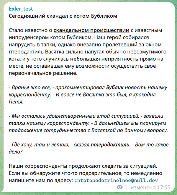 Обо всем этом позже мы еще будем здесь разговаривать, потому что полноценный телеграм-канал трудно сделать без подобных ботов, однако в Telegram и безо всяких ботов существуют определенные возможности улучшить читаемость постов стандартными средствами этого мессенджера.