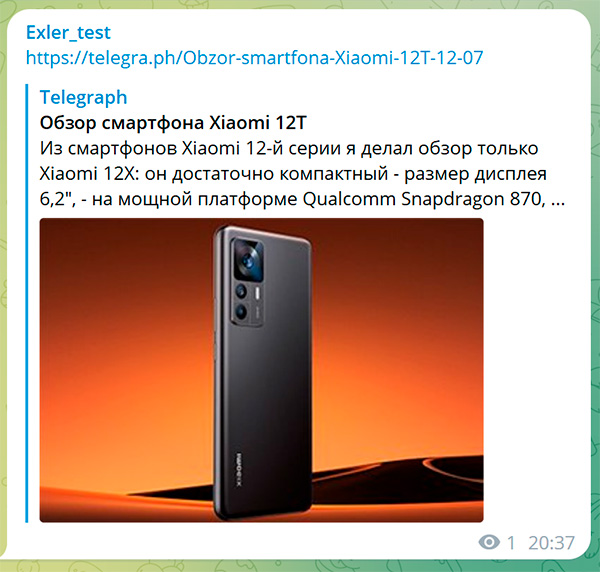 Ну и после нажатия кнопки "Publish" в Telegra.ph вы просто получаете постоянный адрес этой статьи, и эту ссылку можно вставить в пост в Telegram с анонсом.