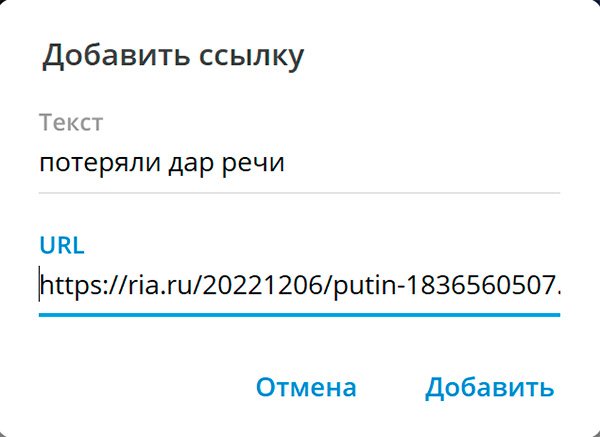 Однако Telegram позволяет ставить ссылки на конкретные слова или сочетания в тексте, при этом точно так же делает анонс, и такое оформление выглядит заметно лучше.