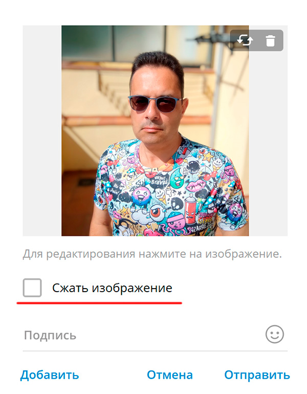А если отметить опцию, то Telegram немного поджатое изображение вставит прямо в пост, и это будет смотреться значительно лучше.