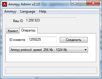 На своем компьютере нужно открыть закладку "Оператор", там вписать ID клиента (цифры запомнятся на будущее) и нажать кнопку "Соединить".