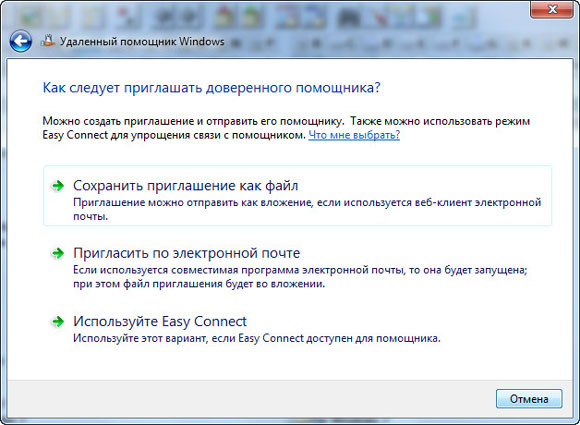 На обоих компьютерах запустите программу "Удаленный помощник Windows". На вызываемом компьютере щелкните "Пригласить того, кому вы доверяете для оказания помощи". Далее может быть три варианта: сохранить приглашение в виде файла, отправить приглашение по электронной почте, использовать Easy Connect.