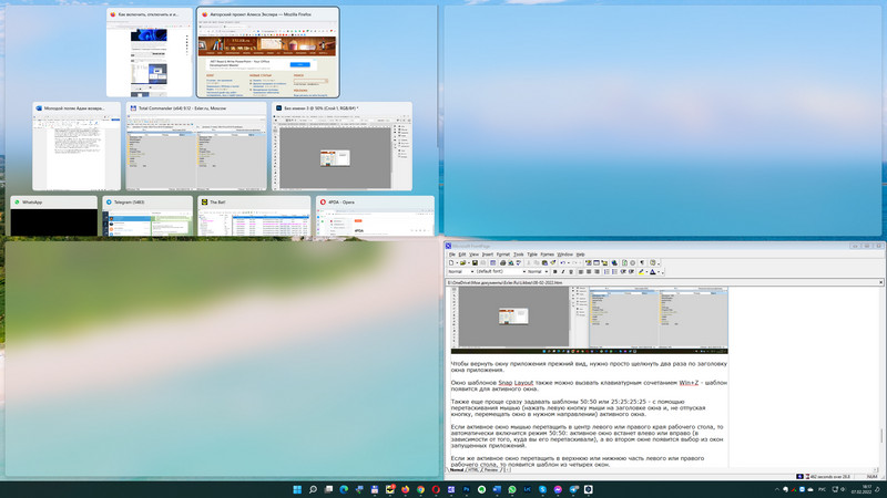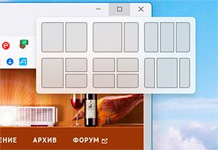 Окно шаблонов Snap Layout также можно вызвать клавиатурным сочетанием Win+Z - шаблон появится для активного окна.