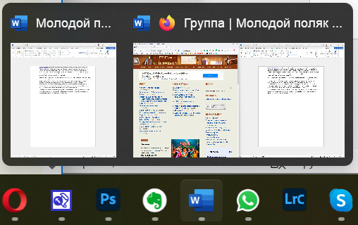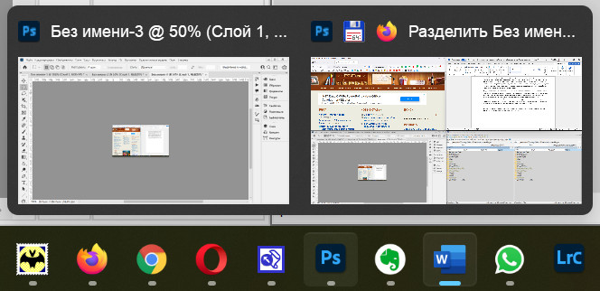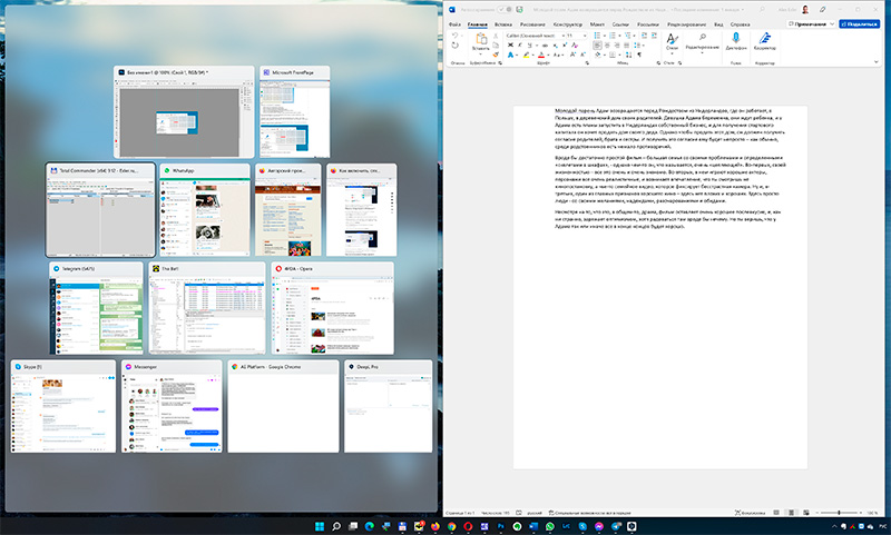 Щелкаете по ней, после чего получаете вот такую картину: в правом окне у вас размещен этот текстовый редактор, а в левом система выводит окошки предпросмотра всех запущенных на данный момент приложений, причем совершенно неважно - они минимизированы или их окна открыты.