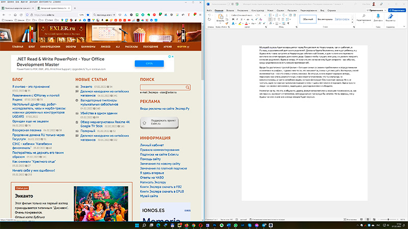 вин и стрелка можно еще окна между мониторами гонять. а если окно кинуть право-влево (например), то при отжатии клавиши "вынь" появляются картинки остальных окон и можно мышью выбрать окно на вторую половину сразу. И при двух окнах рядом можно менять взаимную ширину мышью. В общем, как по мне, инструментарий для расположения на экране одновременно нескольких окон в вынь 10 достаточно развитый. А если знать про всякие приблуды того экселя, чтобы смотреть разные части файла или несколько файлов одновременно, то вообще красота.